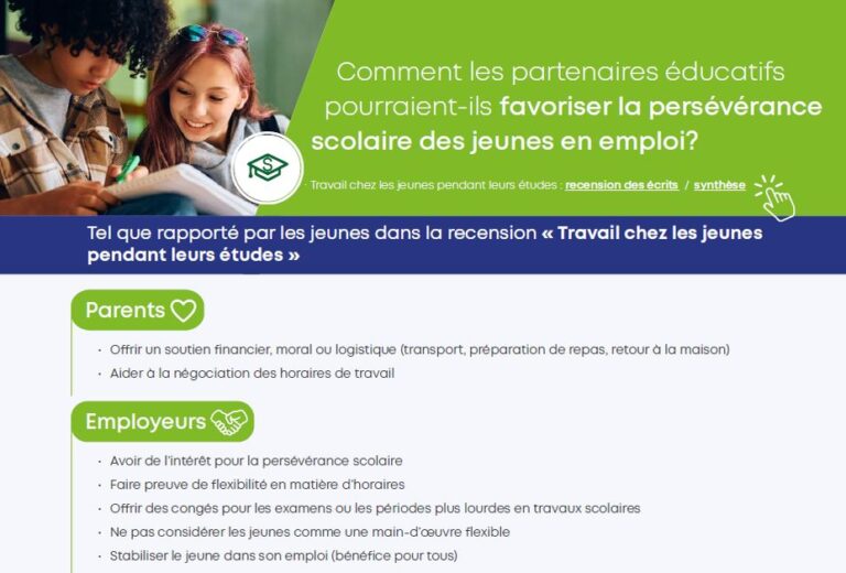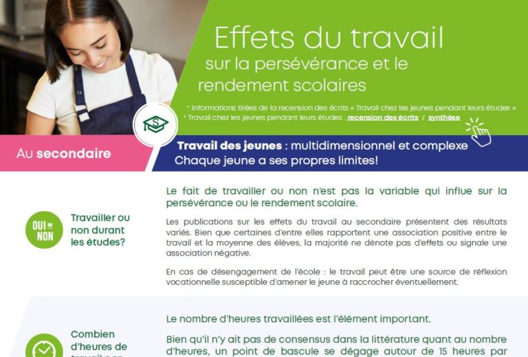 - Quels sont les effets du travail sur la persévérance scolaire des élèves et des étudiants qui travaillent durant l’année scolaire?